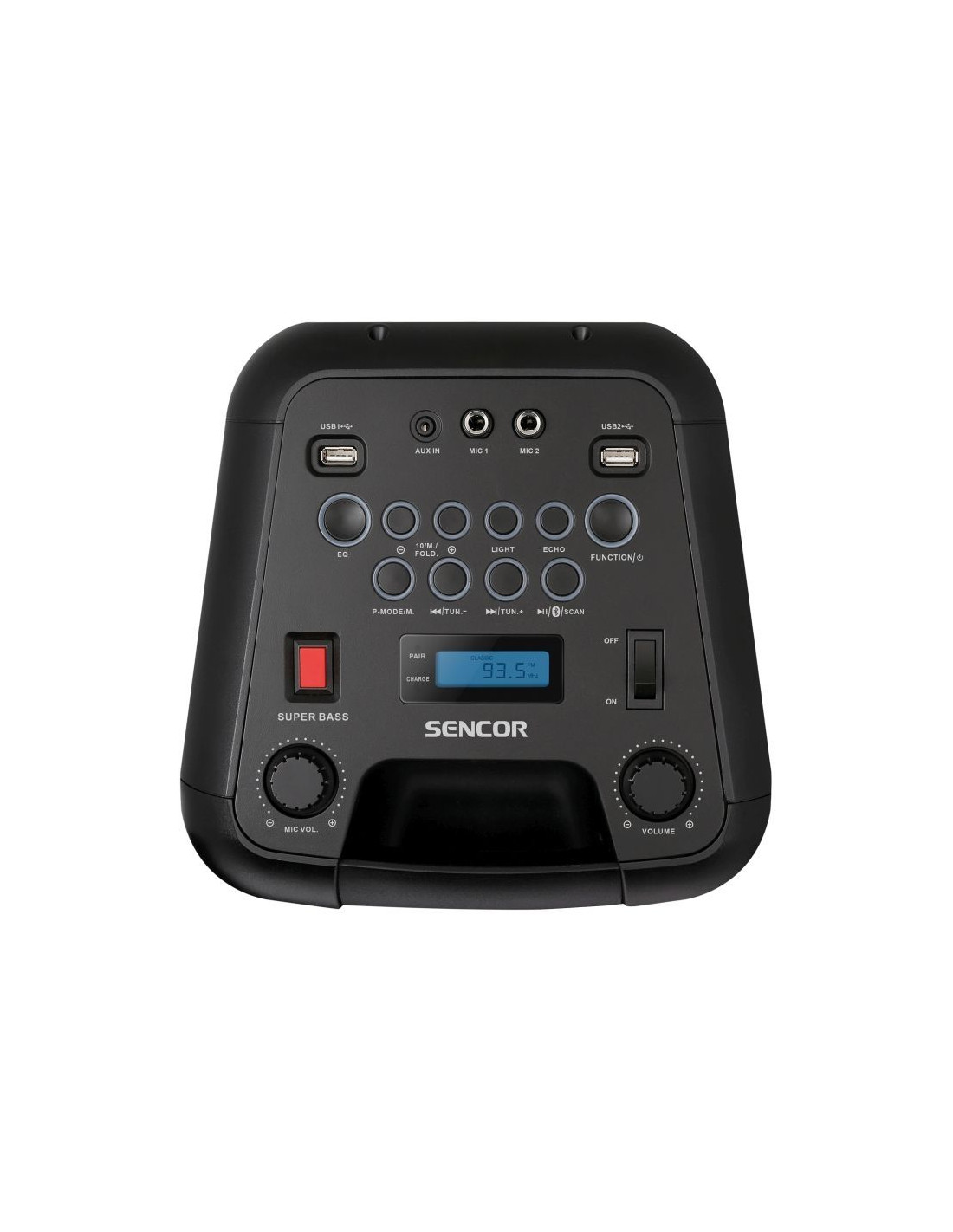Изходна мощност 60 W . 4 високоговорителя (2 ср.обхват + 2 Treble) . Честотен обхват 40Hz-15kHz . Еквалайзер Flat, Classic, Rock, Pop, Jazz . Бутон SUPER BASS, Караоке (ехо, сила звук) . 7-цветно светлинно шоу, 5 мигащи режима . FM PLL радио, 30 настроени станции . Bluetooth Аудио 2.1, Aux (3,5mm стерео жак) . 2x USB (Playback), 2x жак 6,3mm за микрофон . Презареждаща се батерия 4000mAh . Захранване AC 100-240V . Размери: 259 x 272 x 595 mm