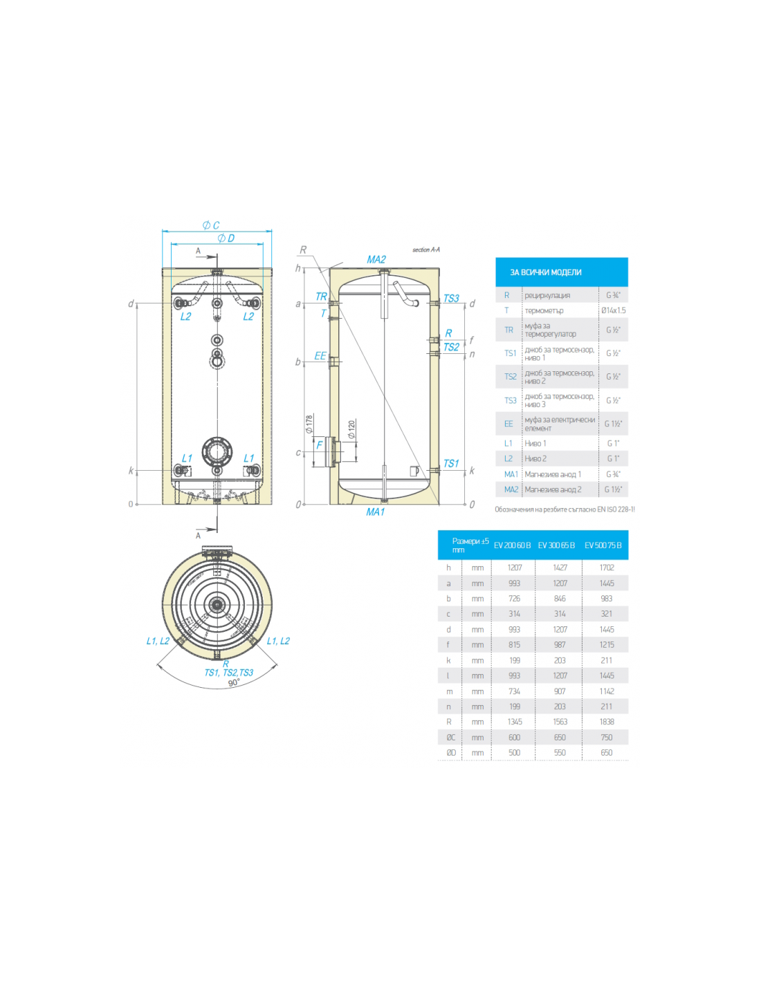 Eмайлиран подовостоящ бойлер за битова гореща вода с възможност да подсигури потреблението на едно и многофамилни жилищни сгради.