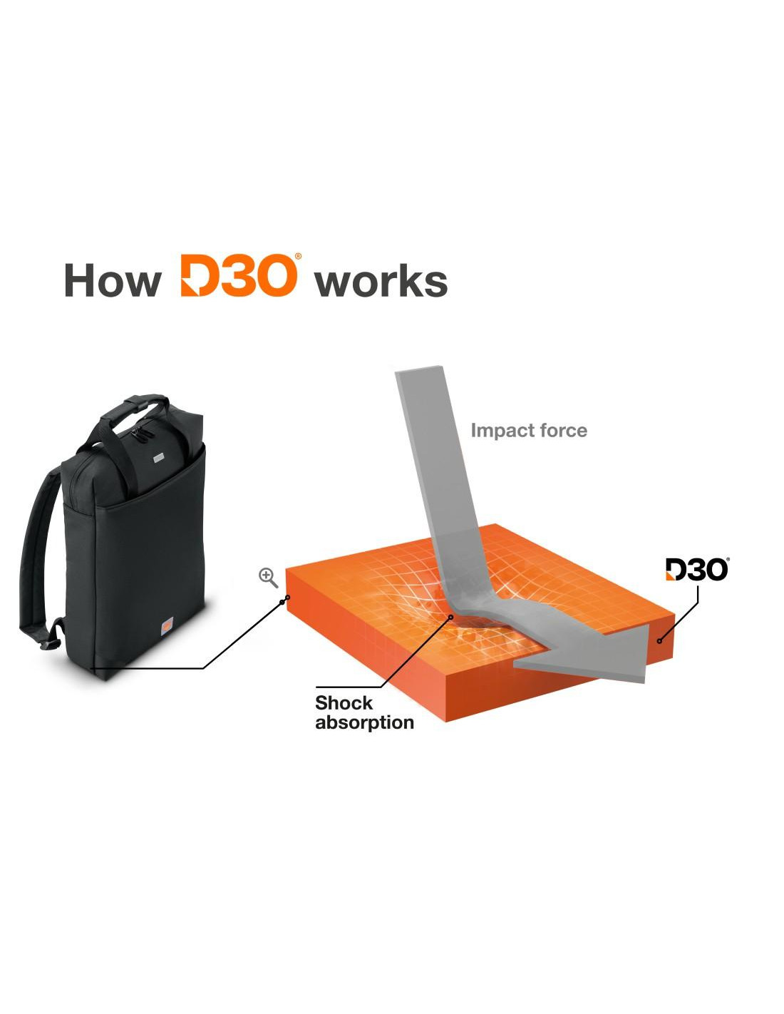 Quite simple: due to its outstanding material properties, elastic D3O is already widely used in Formula 1 racing, for example. To this end, it is used in protective clothing and special protectors for all parts of the body that require a lot of freedom of movement and are particularly at risk in motorsport, e.g. in the event of a fall from a motorbike. As an innovative protective shield, it now also protects your laptop in your business bag: better safe than sorry, no matter how hectic your working day gets. Shockproof protection for you and your devices - so you can go about your day with peace of mind!