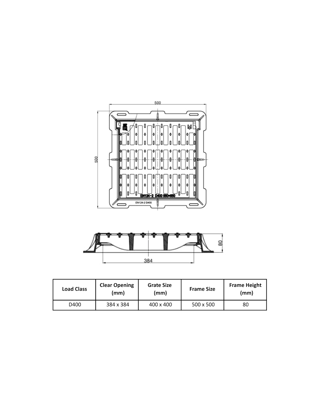 Чугунена решетка 400x400/D400 права