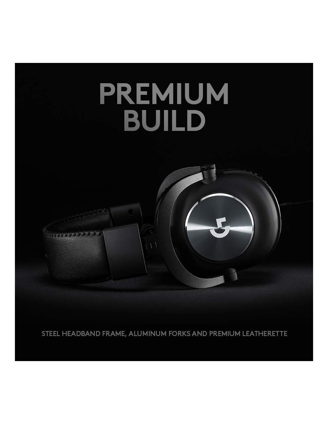Logitech Pro са изградена с трайни алуминиеви панти и стоманена лента за глава за максимална издръжливсот. Ухото от мека мемори пяна с пасивно шумоизолиране е изработено от изкуствена кожа и предлага изключителен комфорт за маратонски сесии.