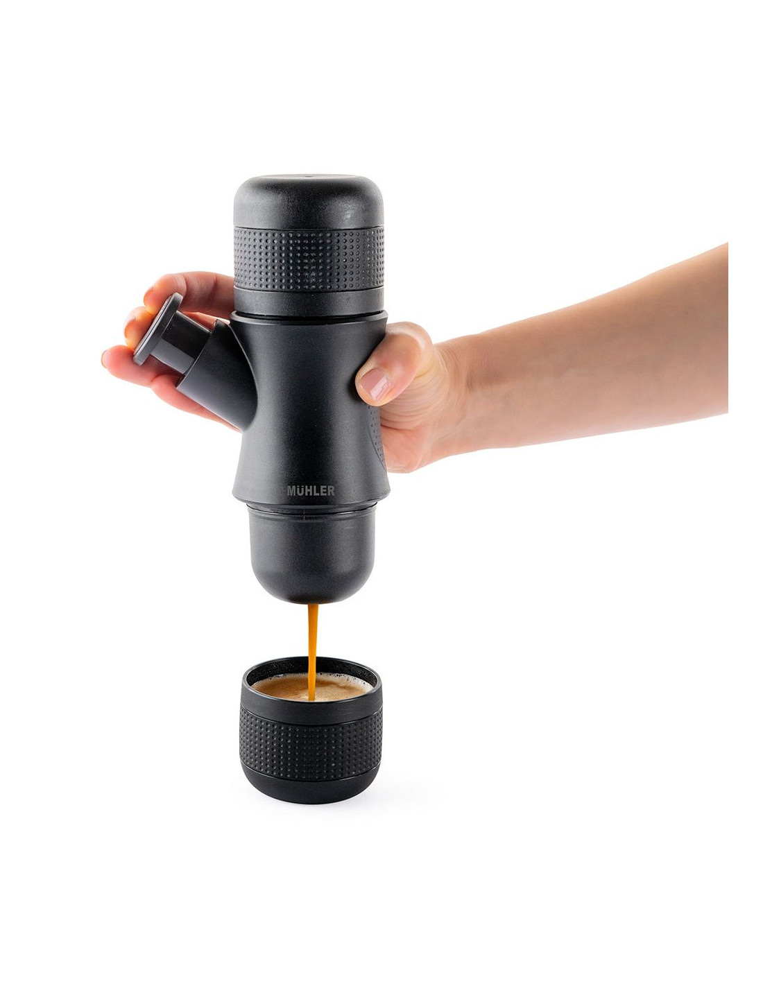 Вградена ръчна помпа в корпуса . До 8 бара нялягане без електричество . Ароматно кафе с минимални усилия . Филтър за кафе с решетка от неръждаема стомана . Мерителна чашка за кафе 7 г . Мерителна чаша за вода 80 мл . Чаша за кафе 70 мл . Изключително лека - само 500 гр . Ръчна употреба, без батерии или електрическо захранване . Перфектна за туризъм, къмпинг, на път или в офиса
