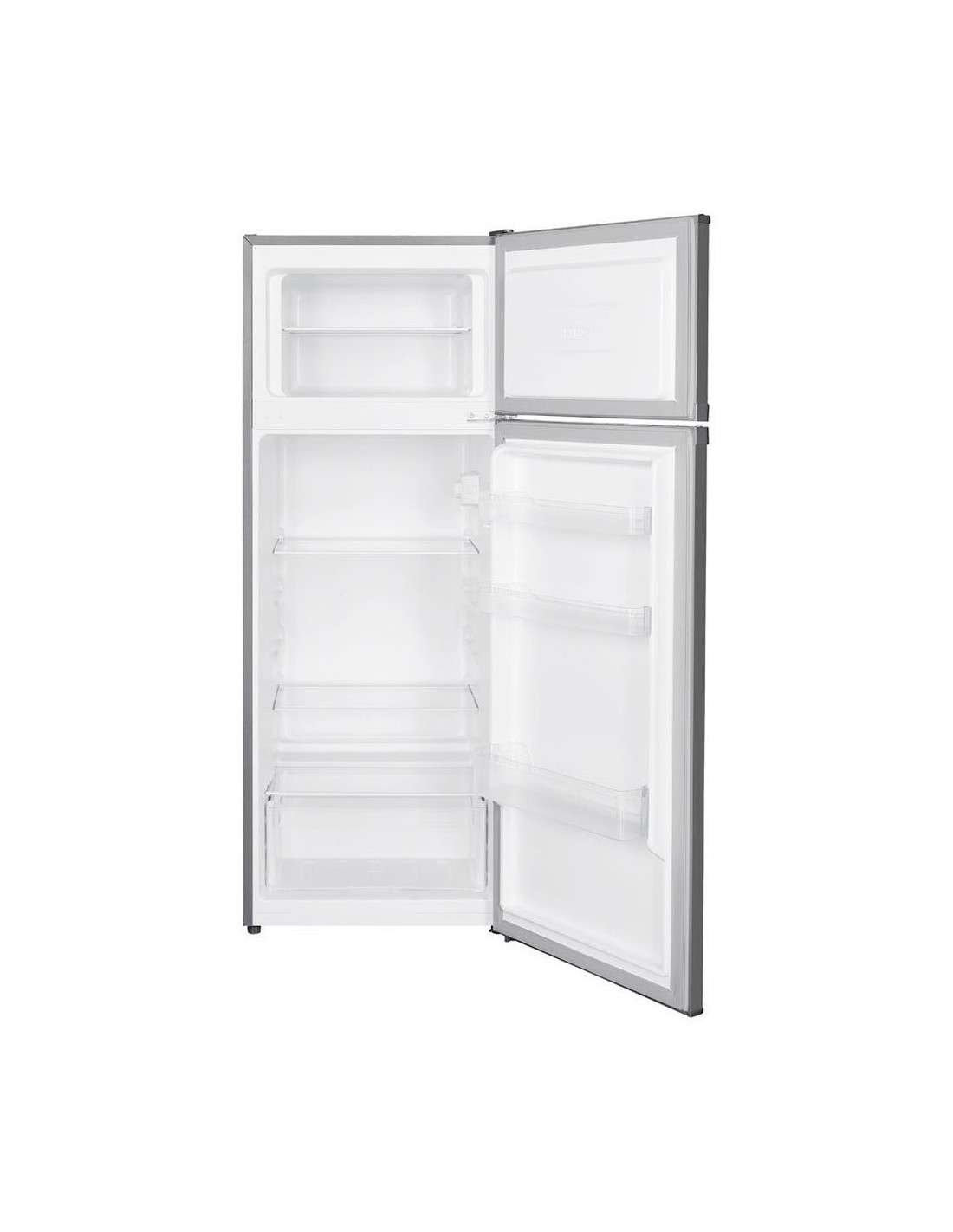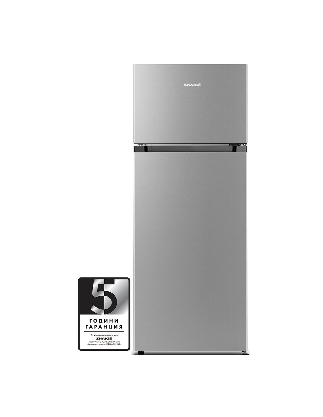 Общ обем 206 л . Обем хладилна част 169 л . Обем фризерна част 37 л . Автоматично размразяване . Енергиен клас Е . Годишна консумация 172 kWh . LED осветление . Ниво на шум <40 dB . Стъклени полици . Интегрирана дръжка . Размери (В/Ш/Д/): 143 х 54.5 х 55.5 см . Цвят сив . Гаранция 2+3 години след регистрация