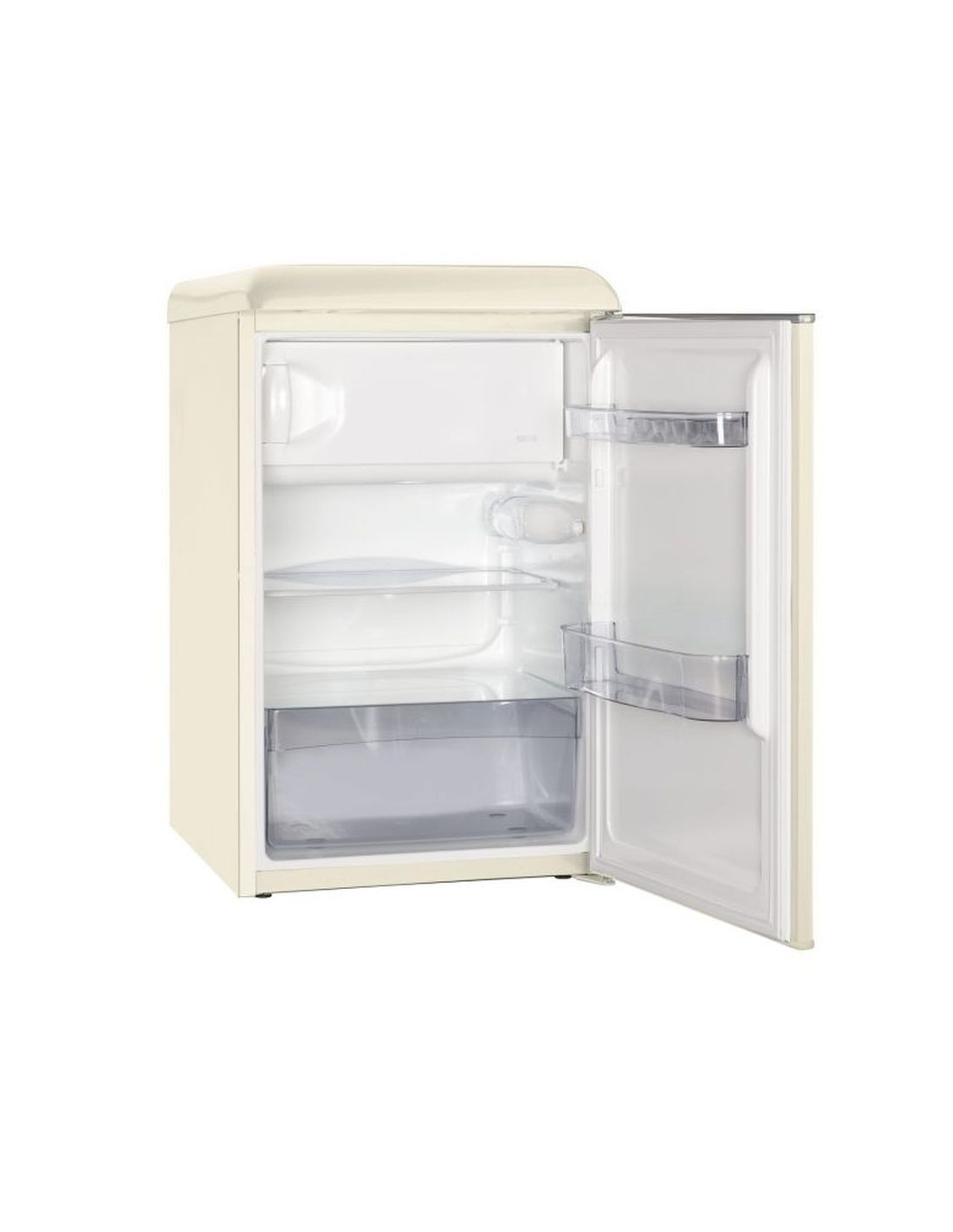 Хладилник с вътрешна камера . Общ обем на хладилника 109 л . Нетен обем хладилна част 92л . Нетен обем на камерата 17л . Саморазмразяване в хладилната част . Годишна консумация на ел.енергия 145kWh . Скорост на замразяване 2кг/24часа . Време за съхранение при спиране на ел.захранването 14 часа . Ниво на шум 39 dB. Тегло 31 кг . Размери (ВхШхД): 88.5 x 56 x 60 см . Елегантен ретро дизайн