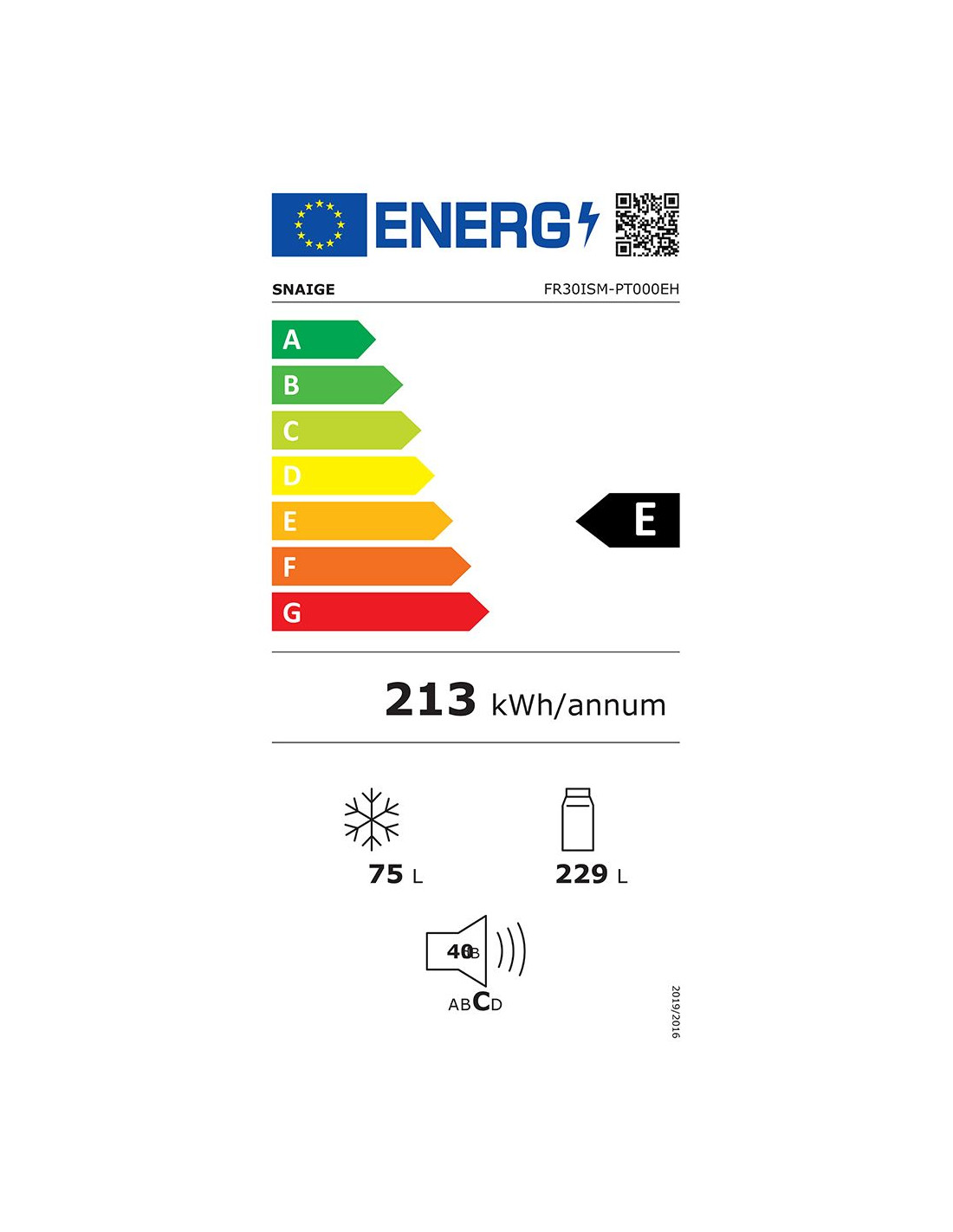 Хладилник с горна камера . Обем на хладилната част 229л . Обем на фризерната част 75л . Общ обем 304 л. Енергиен клас Е . Енергийна консумация 213 kWh/год . Инверторен компресор . Ниво на шума 40 dB(A) re1pW . LED осветление. Стъклени полици . Голямо отделение за зеленчуци . Обръщане на вратата . Размери (ВхШхД): 172 х 60 x 60 см . Гаранция 2 + 3 години след регистрация . Тегло бруто/нето: 55/50 кг . Цвят Бял