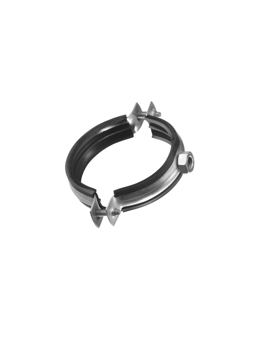Поцинкованата метална скоба с гумено уплътнение, което допринася за намаляването на шума и вибрациите, и компенсира частично топлинното разширение на скобата.