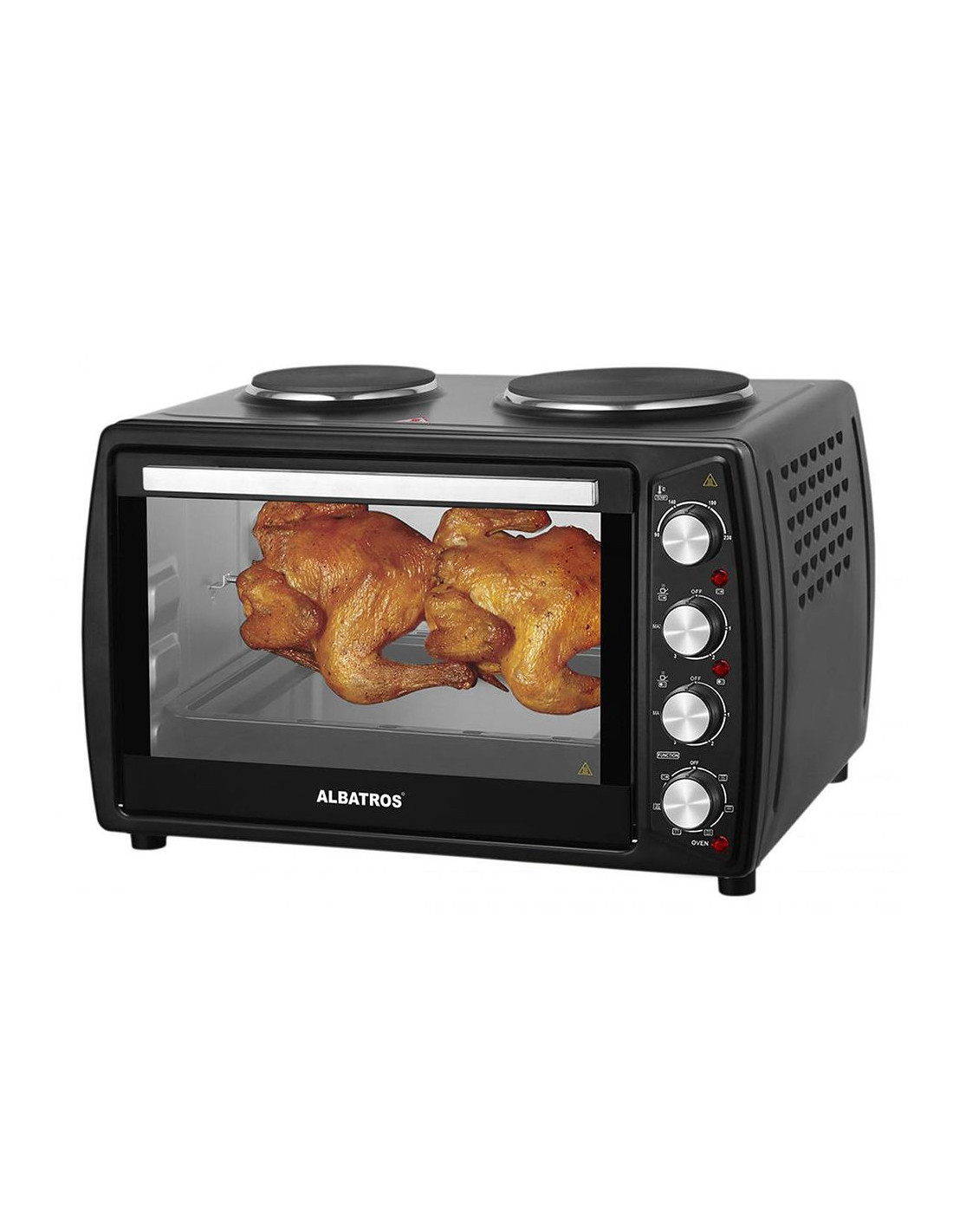 Вместимост 63 литра . 2 електрически котлона . Макс мощност: 3200 W (2200W фурна + 700/1000W котлони) . Скара. Конвекция . Контрол на температурата от 90°C до 230°C . Звуково предупреждение в края на програмата . 4 нагревателни елемента от неръждаема стомана . Селектор със 7 функции . Табла и решетка от неръждаема стомана . Вградена тава за събиране на отпадъци . Размери на работната повърхност: 465x307x16 мм . Размери на тавата: 495x342x18 мм . Брутни размери: 702x470x468 мм . Нетни размери: 620x430x425 mm