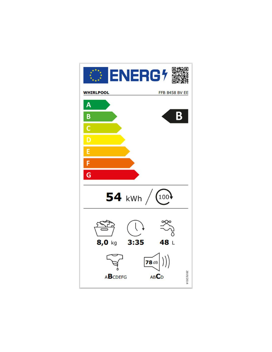 Капацитет на сухо пране 8 кг . Обороти на центрофуга 1400 об/мин . 6th Sense, FreshCare+ . Инверторен мотор . Цифров дисплей. 15 програми . Steam Refresh освежаване с пара . Отложен старт. Кратка програма . Функция заключване . Клас на енергийна ефективност B . Ср.прет. консумация на ел.енергия 54 kWh . Консумацията на вода (Еко) 48 л/цикъл . Шумови въздушни емисии 78 dB . Размери (ВхШхД): 85 х 60 х 63 см . 2 + 3 години гаранция