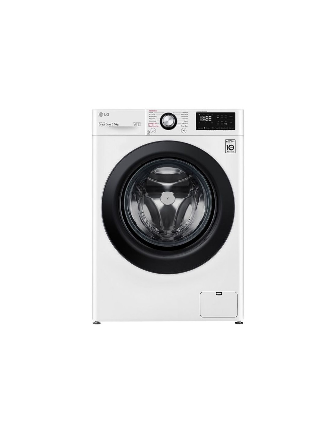 Капацитет 6.5 кг пране . Енергиен клас D . Центрофуга 1200 об/мин . 18 програми, 12 допълнителни опции . Сензор за премахване на пяна . Технологията LG Steam™ отстранява 99,9% от алергените, като домашните акари които могат да причинят алергия или дихателни проблеми . Технологията 6 Motion DD . Инверторен Direct Drive мотор - . 10 години гаранция на мотора . Smart Diagnosis™ - Самодиагностика . Размери (В/Ш/Д): 85 х 60 x 45.5 см.