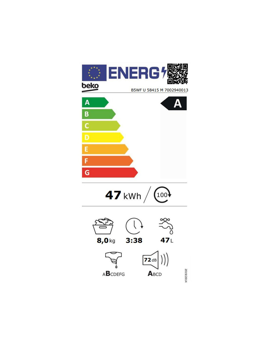 Капацитет 8 кг . Центрофуга 1400 об/мин . Енергиен клас А . Клас на центрофугиране В . Инверторен мотор . Електронно управление . Голям дисплей . Брой програми 15 . Отложен старт . Цвят сив . Размери (ВхШхД): 85 х 60 х 55 см