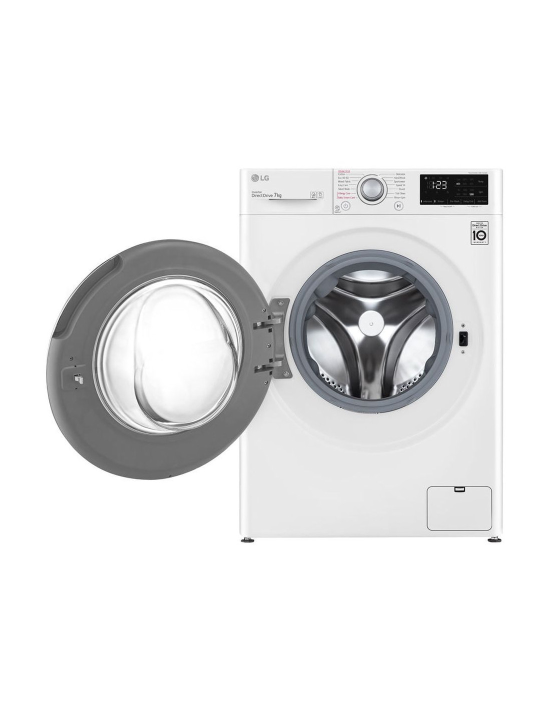 Капацитет 7 кг пране . Енергиен клас D . Центрофуга 1200 об/мин . 14 програми . Сензор за премахване на пяна . Технологията LG Steam™ отстранява 99,9% от алергените, като домашните акари които могат да причинят алергия или дихателни проблеми . Технологията 6 Motion DD . Инверторен Direct Drive мотор - . 10 години гаранция на мотора . Smart Diagnosis™ - Самодиагностика . Размери (В/Ш/Д): 85 x 60 x 47.5 см