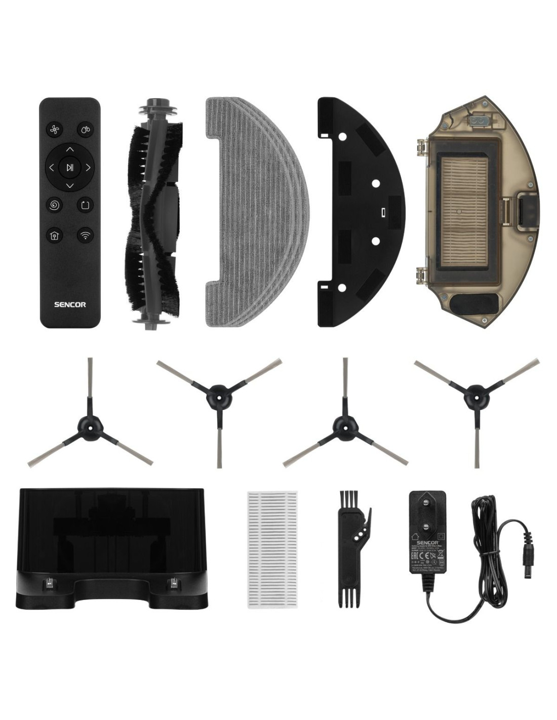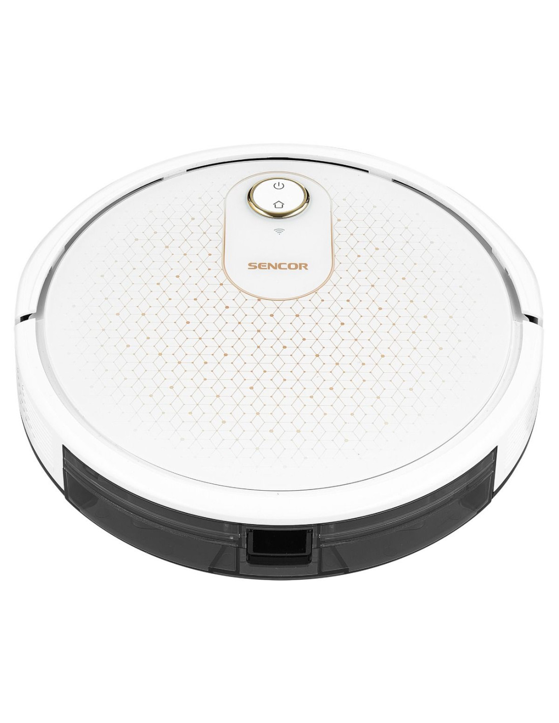 Робот прахосмукачка и моп едновременно . Ротационна четка и две странични четки . 3 нива на засмукване и 3 нива на мопиране . Височина само 7,5 см, диаметър 31 см . Литиево-йонна батерия 2600 mAh (до 100 минути работа). Дистанционно управление . Работа с приложението SENCOR HOME . Лесно Bluetooth сдвояване . Интелигентни сензори за удар и падане . Автоматично увеличаване на производителността върху килими . Време за зареждане 5 ч. Таймер . Вместимост на контейнера 0,2 л . Аксесоари: приставка за мопиране . зарядна база, захранващ адаптер . 3? текстилен моп, 2? AAA батерии . 2? резервни странични ротационни четки . 1? резервен HEPA филтър . 1? резервен дунапренен филтър . четка за почистване . Входна мощност 28 W . Ниво на шум 60 dB . Цвят Бял . Тегло 2,4 кг
