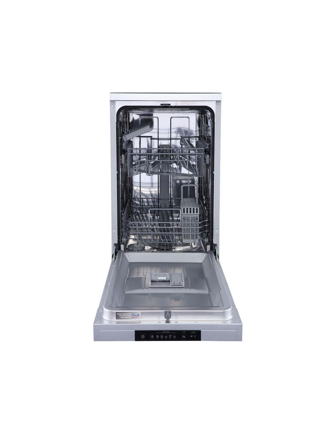 Брой комплекти за миене 9 . Дисплей . 5 програми: Накисване, Еко програма, . Интензивна програма . Кратка програма, Програма 1 час . 4 температури 65/60/45/35 . 2 кошници . Консумация на вода ECO 9 л/цикъл . Защита от преливане AQUASTOP . Отложен старт . Размери (ВхШхД): 85 х 45 х 60 см . Цвят сив