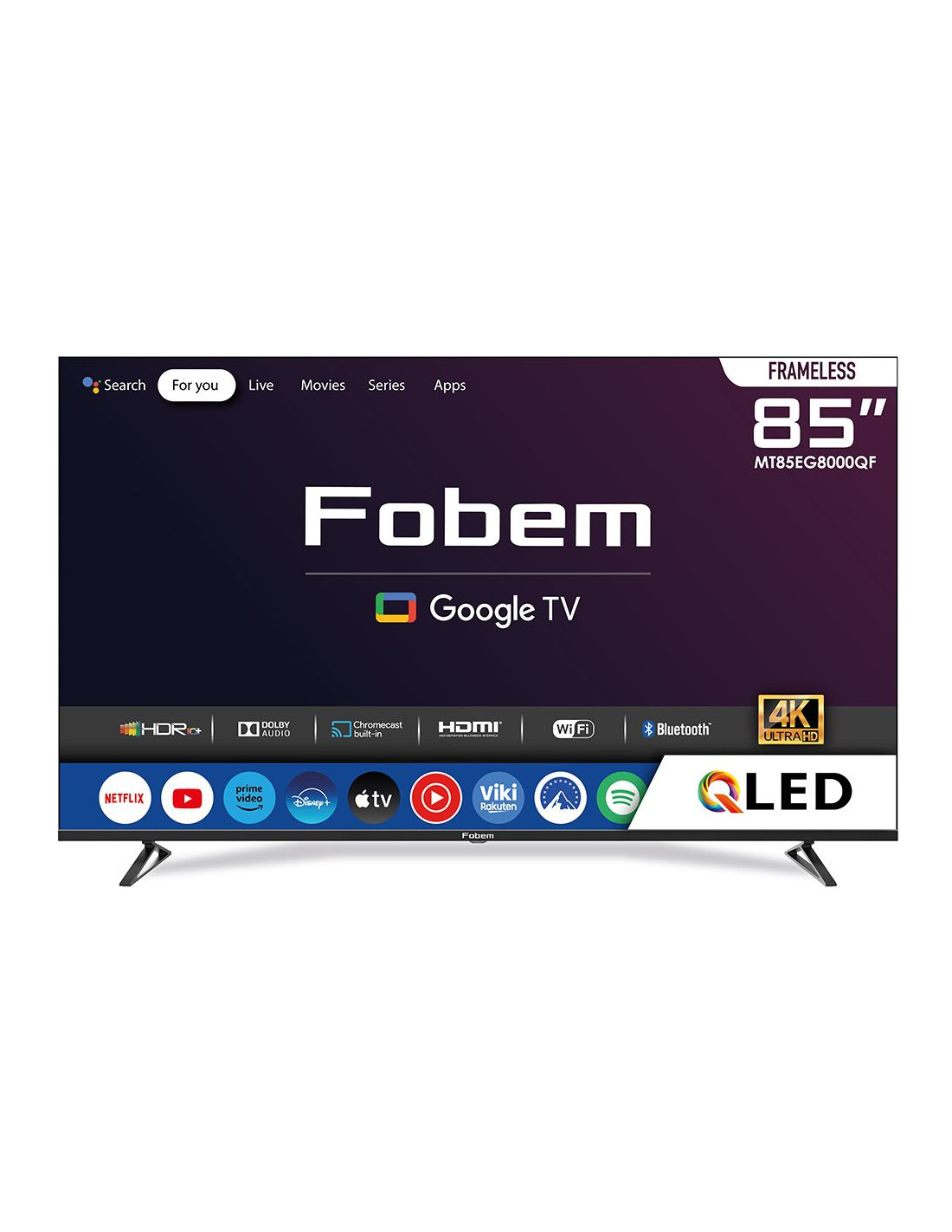85" (216 см) QLED Ultra HD дисплей . Резолюция 3840 x 2160 pcs 4K UHD . Тунери: DVB-T2, DVB-C2, DVB-S2 H.265 HEVC . Вид процесор 4-Core Processor . Честота на опресняване 60Hz . Операционна система Google TV . Памет 8GB ROM + 2GB RAM . SMART функция, Wi-Fi Direct, Bluetooth High quality . HDMI х 3, (ARC) USB х 2, VGA x 1 . CI+ Module input. Voice контрол . Звук 2x 10W Stereo Speakers . Ултра тънка рамка . Цвят черен