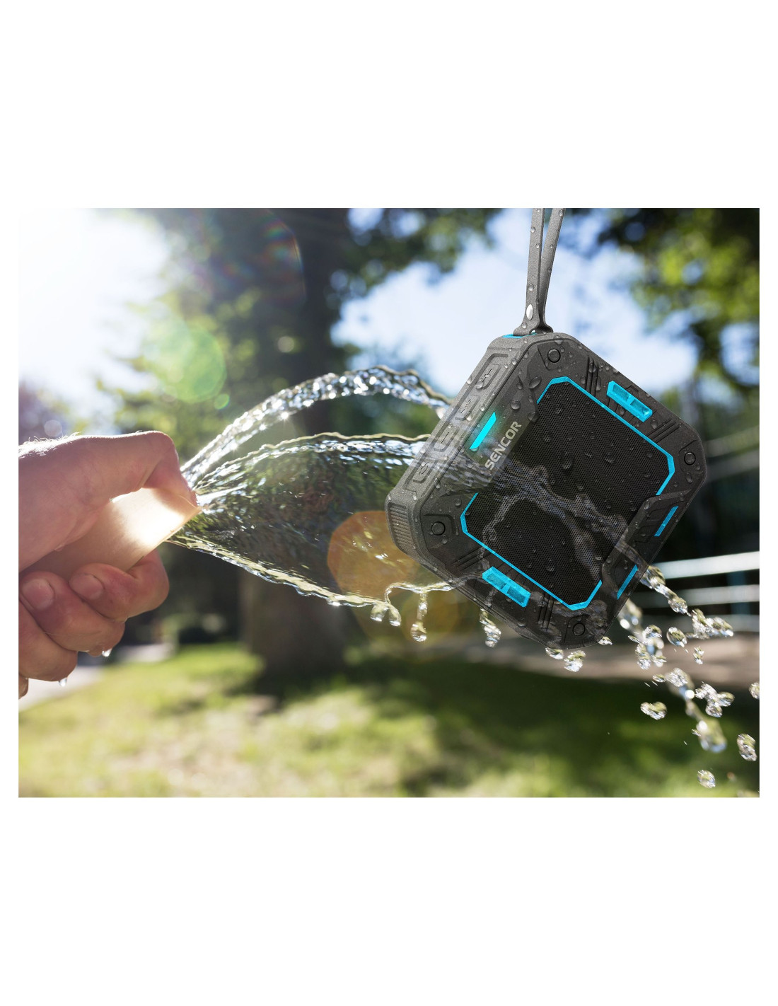 Водоустойчива конструкция с IPX5 . Мощност 5 W, Импеданс 4 Ом . Честотен диапазон 180 Hz - 18 kHz . 1 високоговорител + 1 пасивен бас . Вход: Bluetooth Audio 4.1 до 15 m, . Audio Aux Вход 3.5 mm стерео жак . Функция „Хендсфри“ . Aкумулаторна Li-Ion батерия 1500 mAh . Време за възпроизвеждане до 13 ч . Микро USB Зарядно . Време за зареждане 4 ч . Аксесоари: USB кабел за зареждане, 3.5 mm Aux кабел, 1/4" Връзка за закачване . Размери: 98 x 90 x 50 mm, Тегло: 300 g . Усилвател клас D (за богат звук и оптимално качество с минимално потребление на енергия)