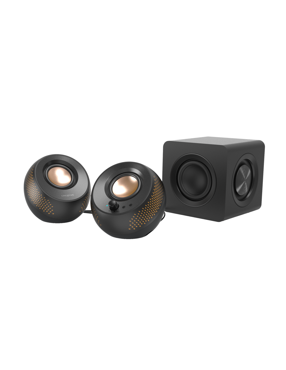Моделът Creative Pebble X Plus е 2.1-канална настолна озвучителна система с USB-C захранване, Bluetooth 5.3 и RGB осветление. Тя предлага мощен и балансиран звук благодарение на 2.75" full-range драйвери и компактен субуфер за подобрен бас.