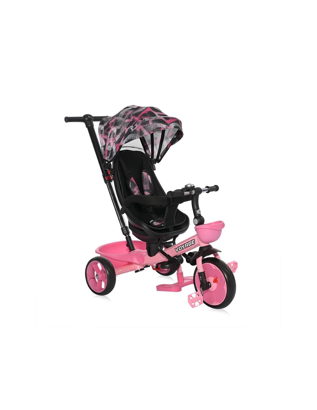 сгъваем сенник,мека седалка,тапицирана облегалка,подвижна поставка за крачета,звънец,накланяща се облегалка,задни колела със спирачки,отстраняем гриф,позиция: с гръб към родителя,позиция: с лице към родителя,позиция: родителски контрол,пластмасов багажник,2 позиции за регулация на височината на дръжката за родителски контрол,отстраняема тапицерия за лесно почистване,триколка - колело,поставка за крачета за по-малки деца,педали,предно кошче за поставяне на бутилка,вкл./изкл. на механизма за свободно движение,EVA гуми,дъждобран за триколка /не е включен/,Сгъване на кормилото,максимално тегло 25 кг.,Предна гума: 11 инча,Задни гуми: 9 инча///