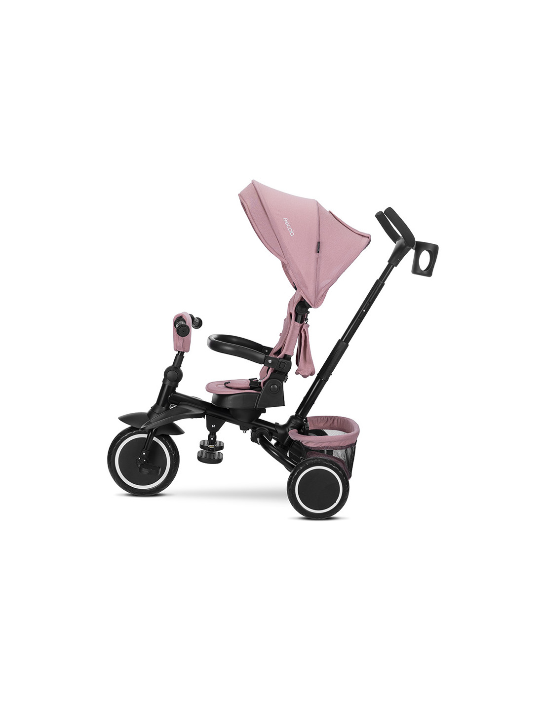 чанта за аксесоари,размери,сгъваем сенник,сгъваема до компактни размери,удобна родителска дръжка с 3 позиции за регулиране на височината,Отстраняем гриф,текстилен багажник,позиция: с гръб към родителя,позиция: с лице към родителя,предпазни колани,Индивидуални спирачки на задните колела,сгъваема поставка за крачета,отстраняема тапицерия за лесно почистване,TPR ръкохватки,вкл./изкл. на механизма със свободно движение,поставка за чаша,Неплъзгащи педали,Седалка с облегалка,Велосипед триколка,Накланяща се облегалка в позиция гръб към родителя,Поставка за крачета за по-малки деца при позиция с гръб към родителя,Поставка за крачета за по-малки деца при позиция с лице към родителя,Предно кошче,Mека седалка///