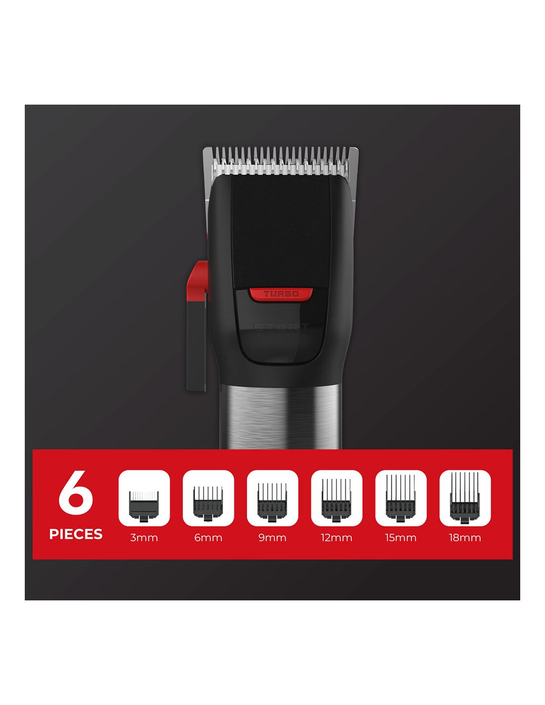 Турбо функция за по-бърза скорост на подстригване . Акумулаторна – над 120 минути безжична употреба . Самонаточващи се прецизни остриета . Възможност за регулиране на рязането 1-1,9 мм . 6 приставки гребен (3 мм, 6 мм, 9 мм, 12 мм, 15 мм, 18 мм) . Цифров дисплей . Бутон за включване/изключване . Време за зареждане 2 часа . Напрежение на двигателя 3.7 V . Литиева батерия 2000 mAh . Вход 5V 1A
