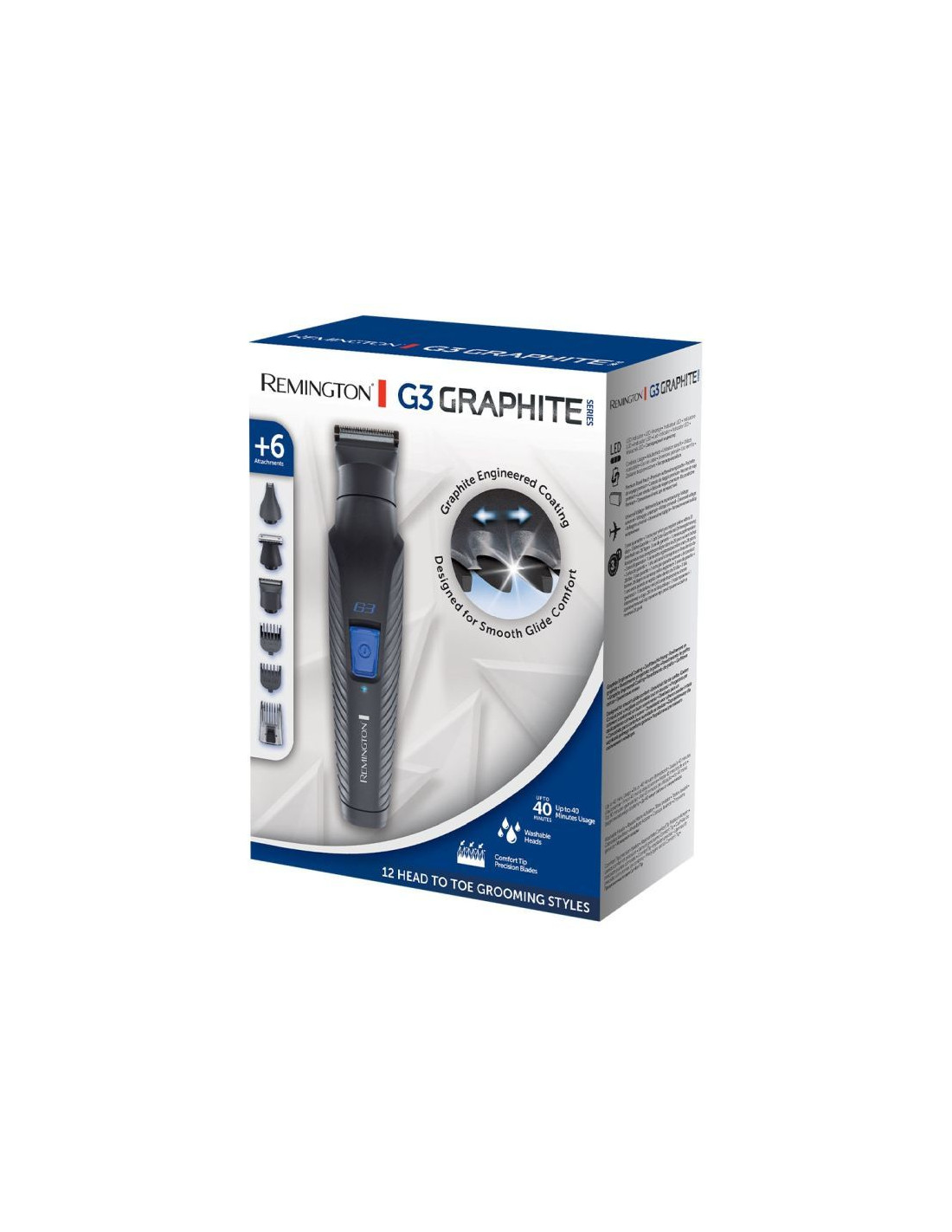 Брой гребени в комплекта: 3 . Мин. дължина на подстригване: 0.20mm . Макс. дължина на подстригване: 20mm . Покритие на остриетата: Графитено . Самонаточващи се остриета . Приставка за детайли . Приставка за нос и уши . Тип захранване: Кабел . Вградени акумулаторни батерии . Време за работа на батерии: 40 минути . Ниво на шум в db: 75 . Допълнителни: . Измиване на приставките под течаща вода . Индикация за зареждане . Универсален волтаж . Ефект 'току-що набола брада' . Тример за бакенбарди и детайли . Чантичка за съхранение