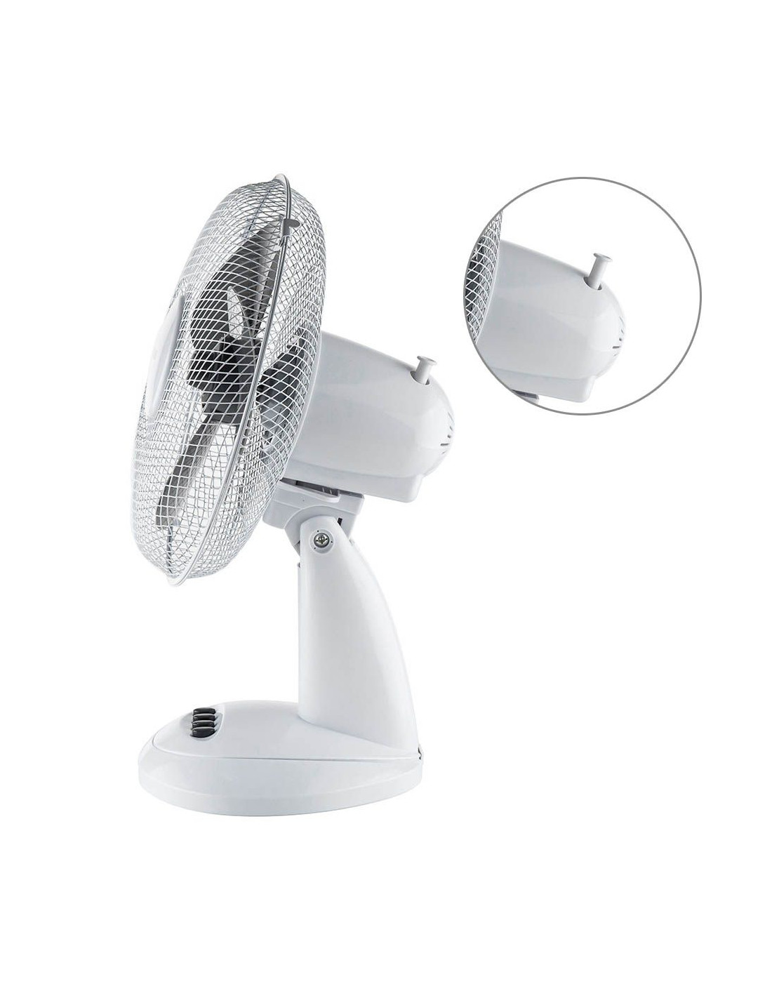 12" настолен вентилатор . Плетена решетка за повече сигурност . 3 PP перки с висока ефективност . 3 степени на въздушната струя . Функция "Осцилация" . Кръгла стойка . Мощност 30 W . Захранване 220-240V/50-60 Hz
